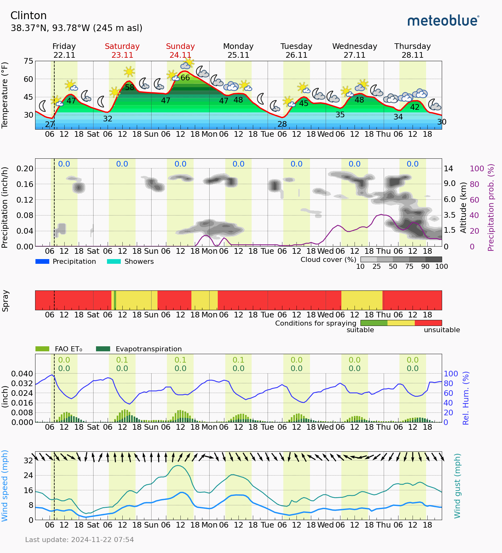 We are expecting another storm system to move into the Midwest towards the middle of next week, right in time for the Thanksgiving Holiday. Total precipitation only reaching .3″ on average, but will aggravate any chances to work some ground. I have seen many over the last 2 weeks doing broadcast wheat, which is very popular here in our area. We are set to see active weather all the way through around the 9th of December, with several disturbances moving in. And yes, there are a few chances for winter precip as well. Temperatures stay near average over this period. Here is a word from the USDA Meteorologists talking about crop conditions as well as our meteogram for this week. Subby