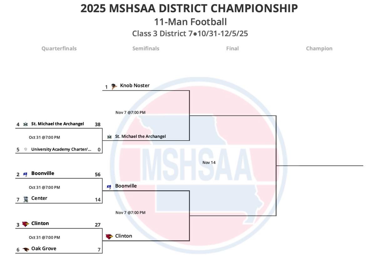 The victory improves Clinton’s record to 8–2 and propels them into the District Semifinals. The Cardinals will hit the road to face Boonville next Friday, November 7, with kickoff scheduled for 7 p.m.