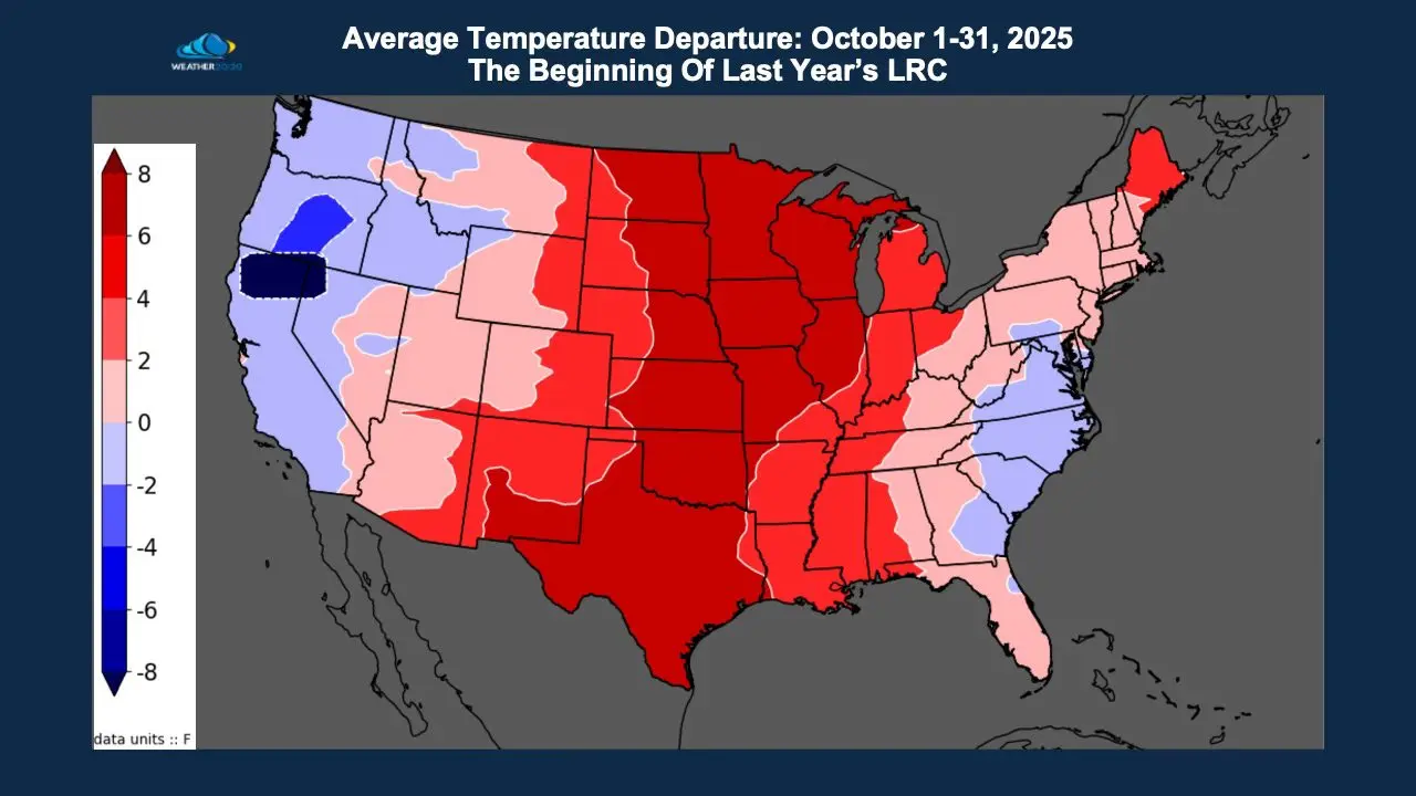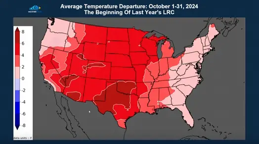 As you can see, we are much wetter here in the Midwest than we were last year. Now, let’s look at the temperatures for the same time period starting off with last October data: