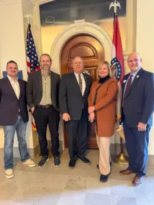 Representing Clinton at the Capitol were Jared Goodbrake, Vice President of Clinton Main Street; Mike Meyer, President; and Sarah Goth, Director. They were joined by Representative Jim Kalberloh and Keith Winge of Missouri Main Street Connection.